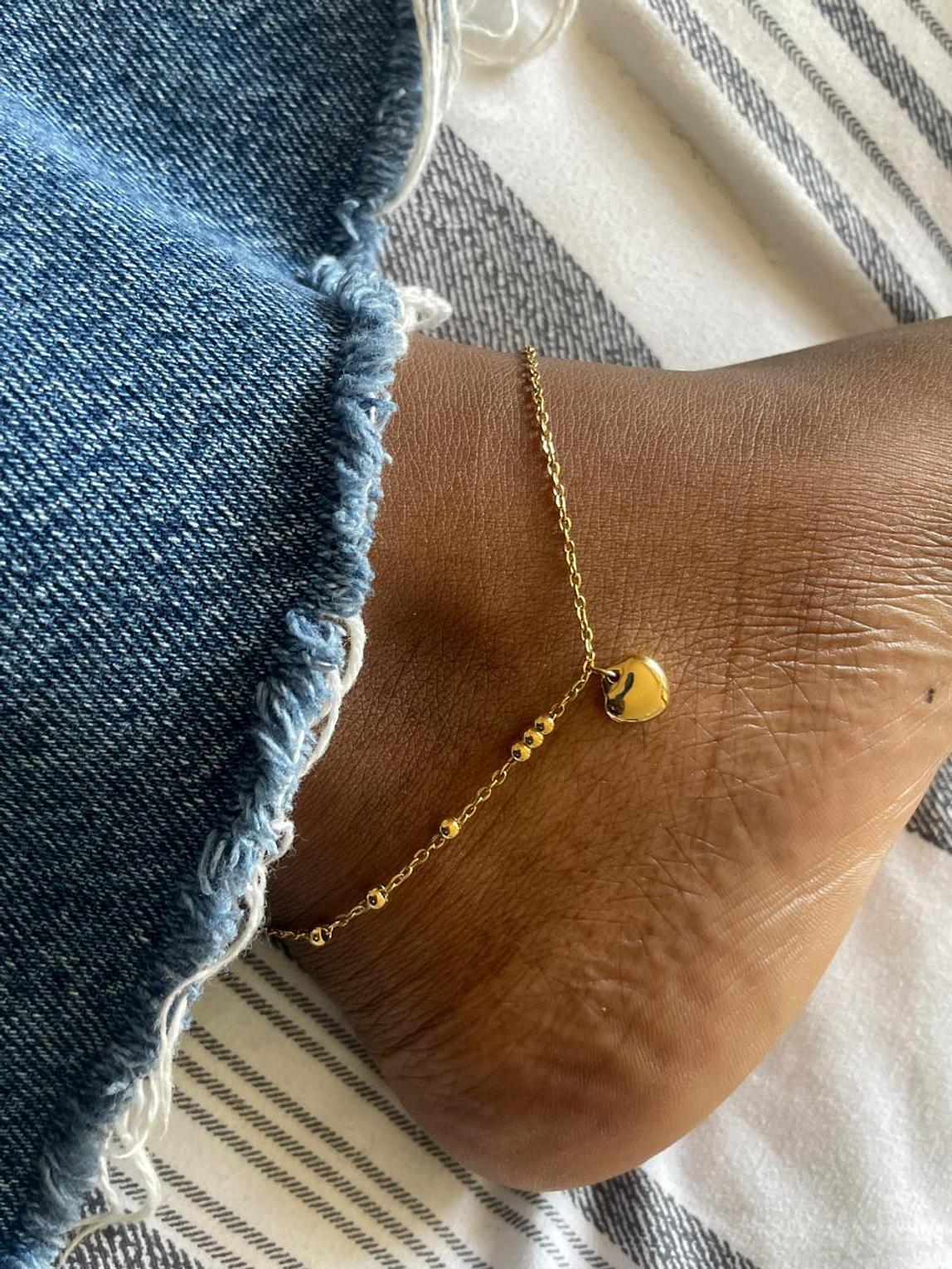 Show your affection with this charming anklet featuring a small, high-polish heart charm that rests delicately on the ankle. The fine chain is accented with tiny, gleaming beads for added texture and shine.