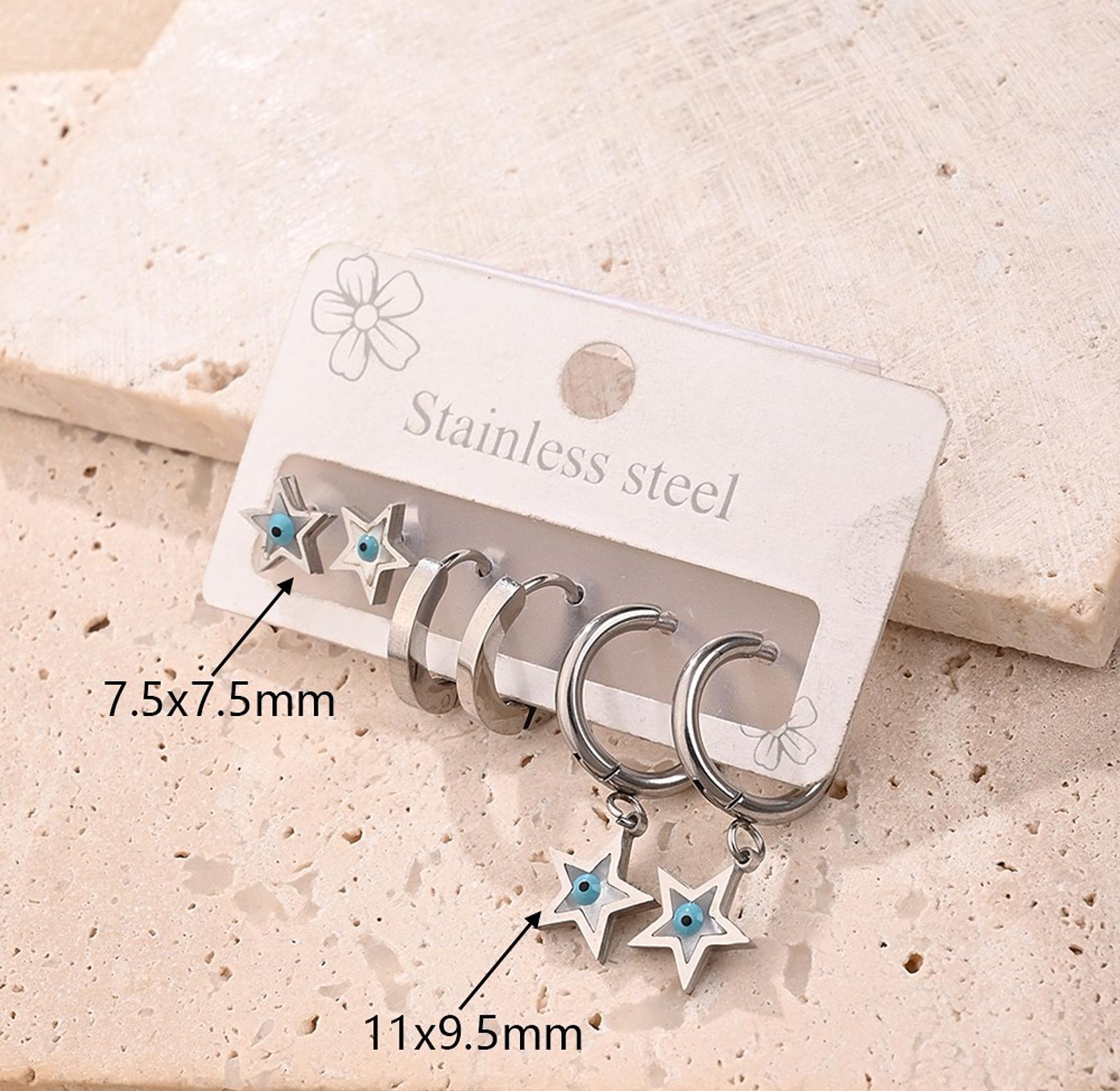 Modern pentagram earrings crafted from polished stainless steel with enamel detailing—simple, stylish, and perfect for everyday wear.