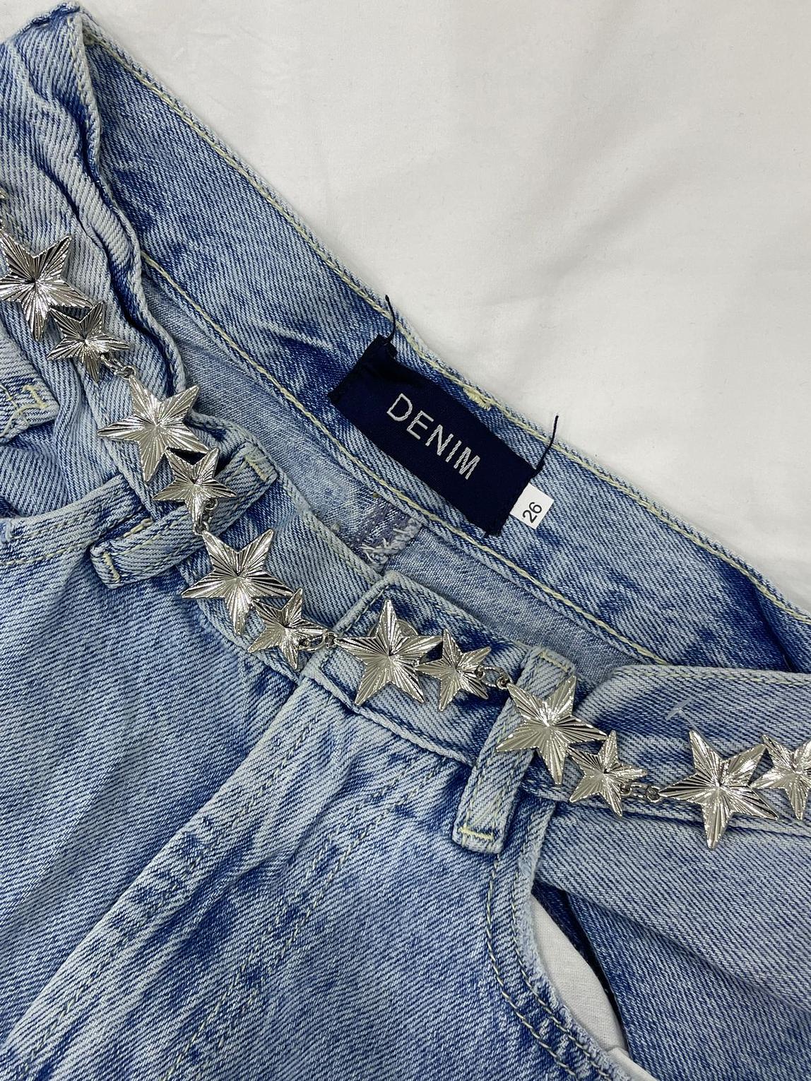 Transform your denim and casual looks with this enchanting star-link chain belt featuring detailed celestial motifs in radiant gold or polished silver. The perfect statement piece to add cosmic glamour and define your waistline with stellar style.
