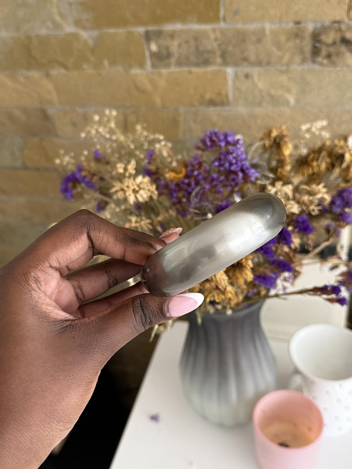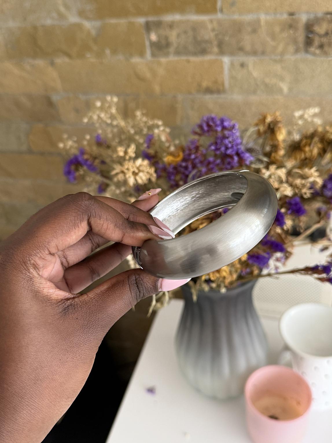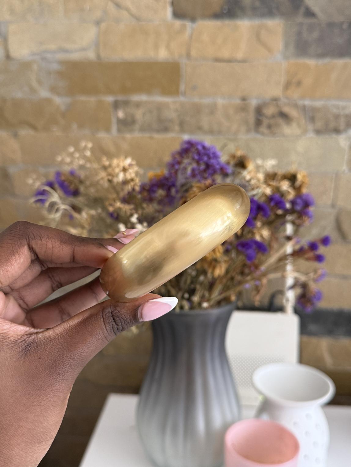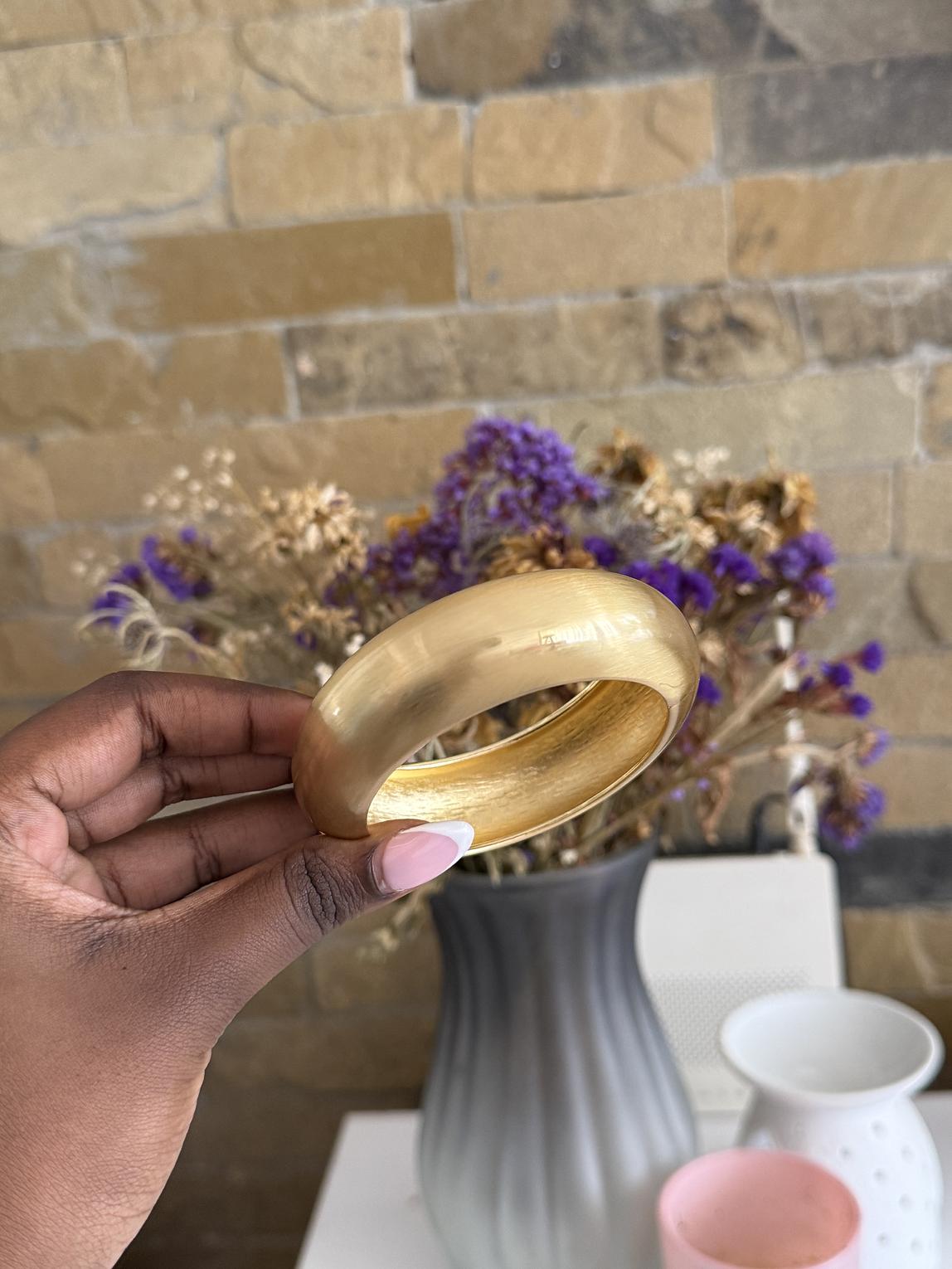 Smooth bangle with a brass feel finish.