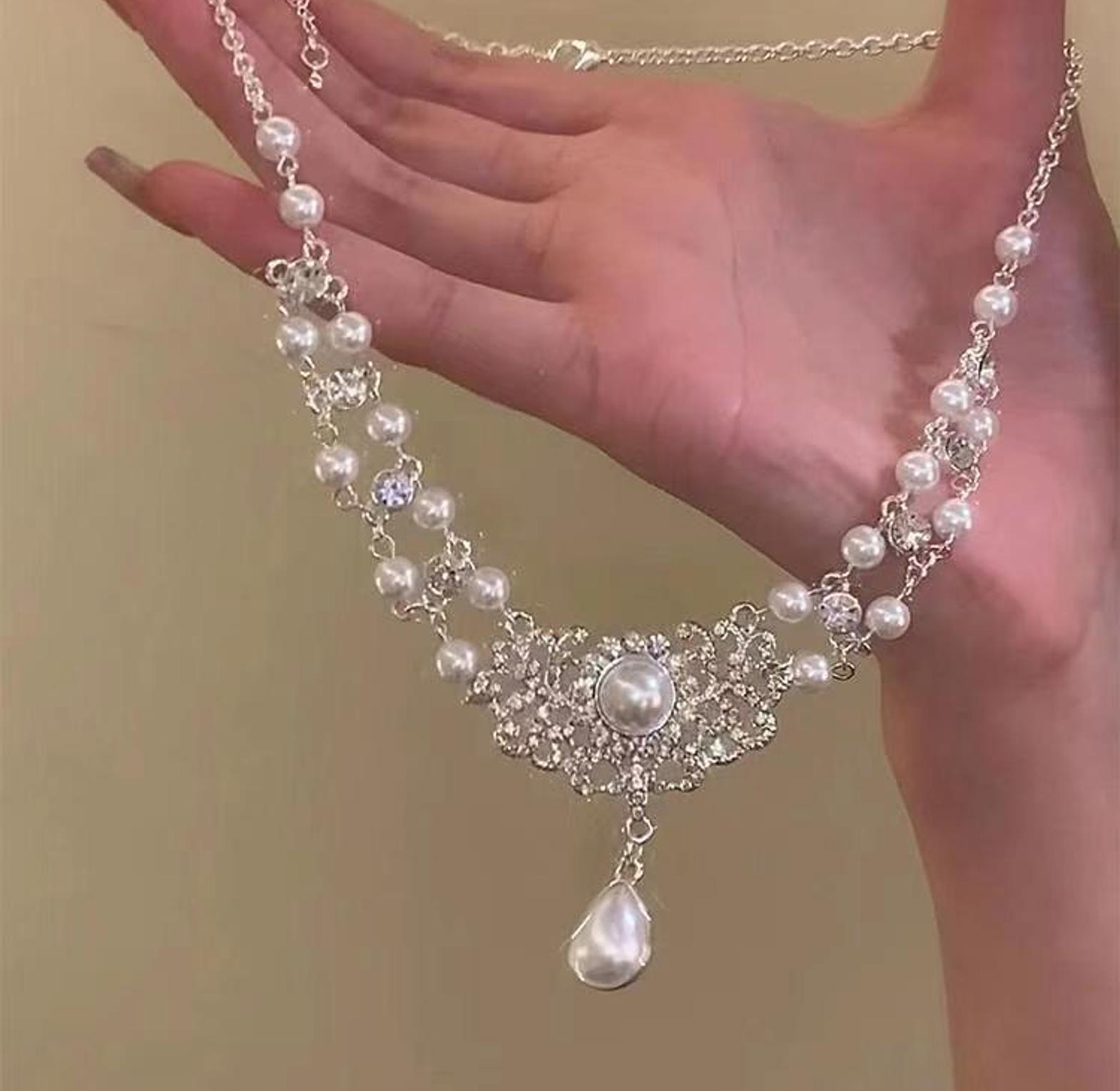 Elegant French-style retro necklace inspired by princess court fashion. A delicate clavicle piece perfect for bridal, wedding, and evening dresses.