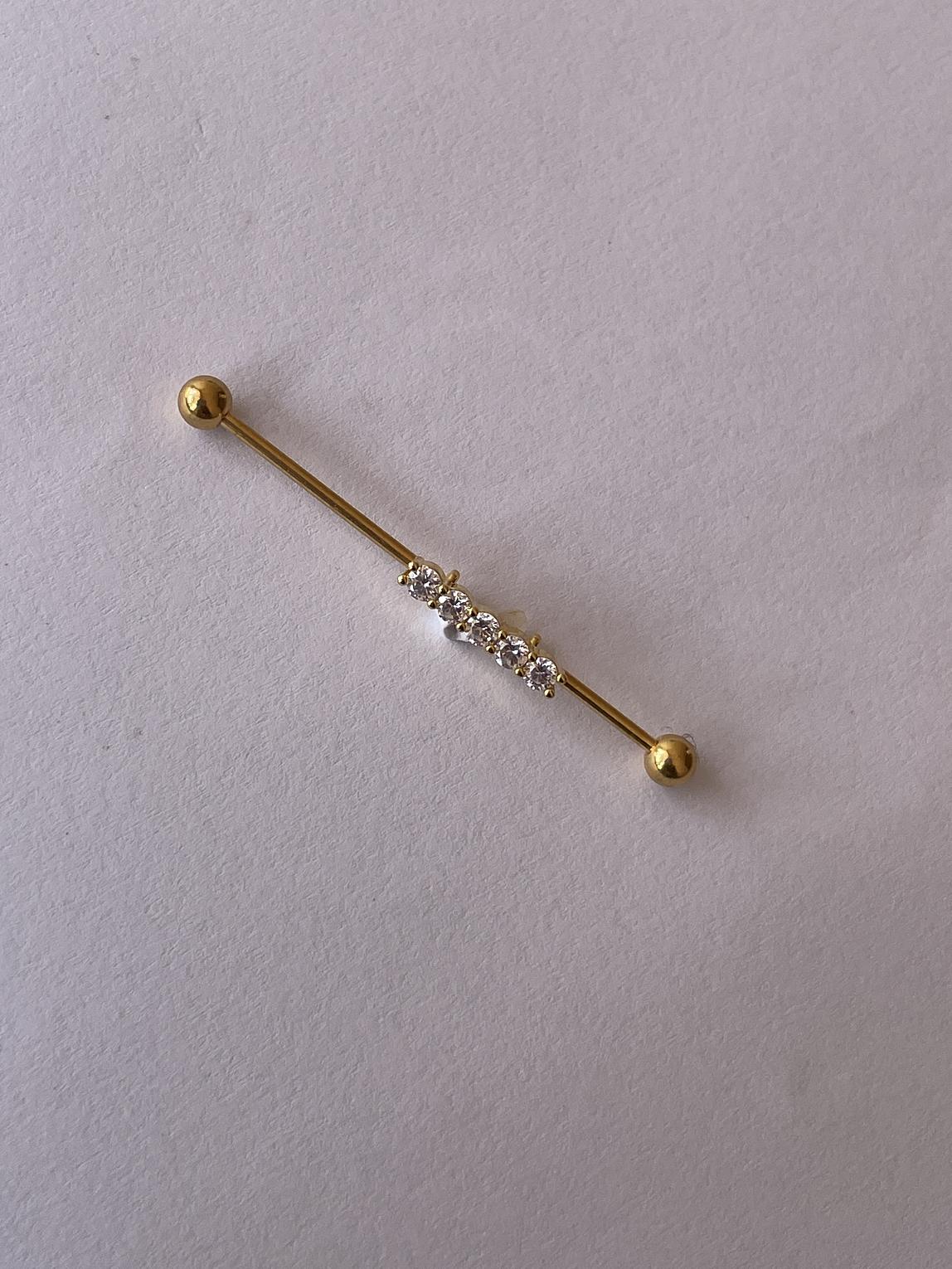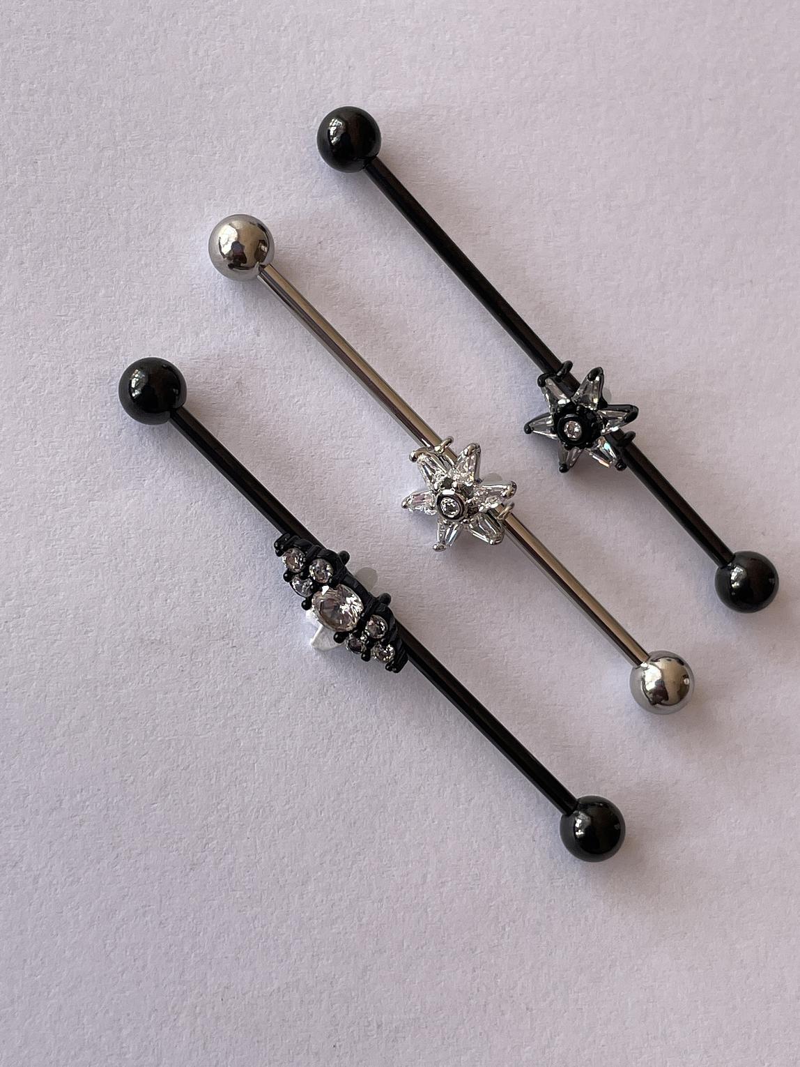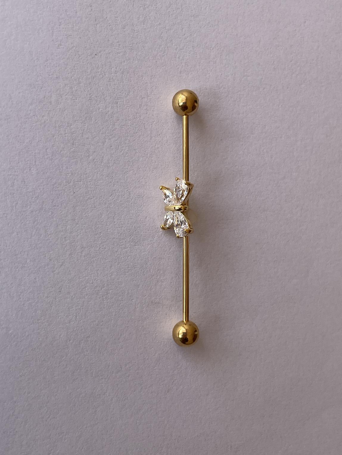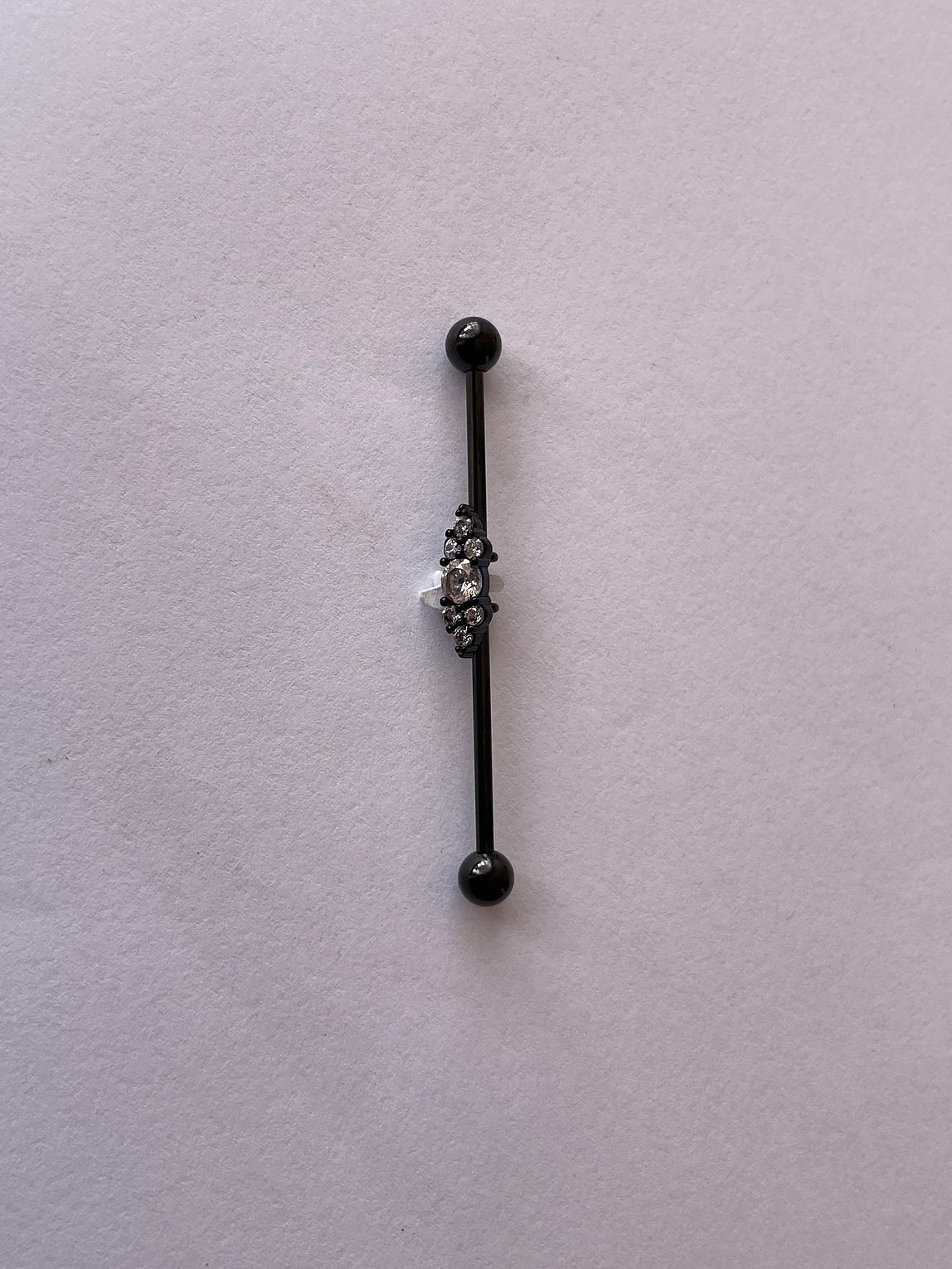 A striking floral dazzling industrial bar that combines edgy body jewelry design with delicate, sparkling detail.