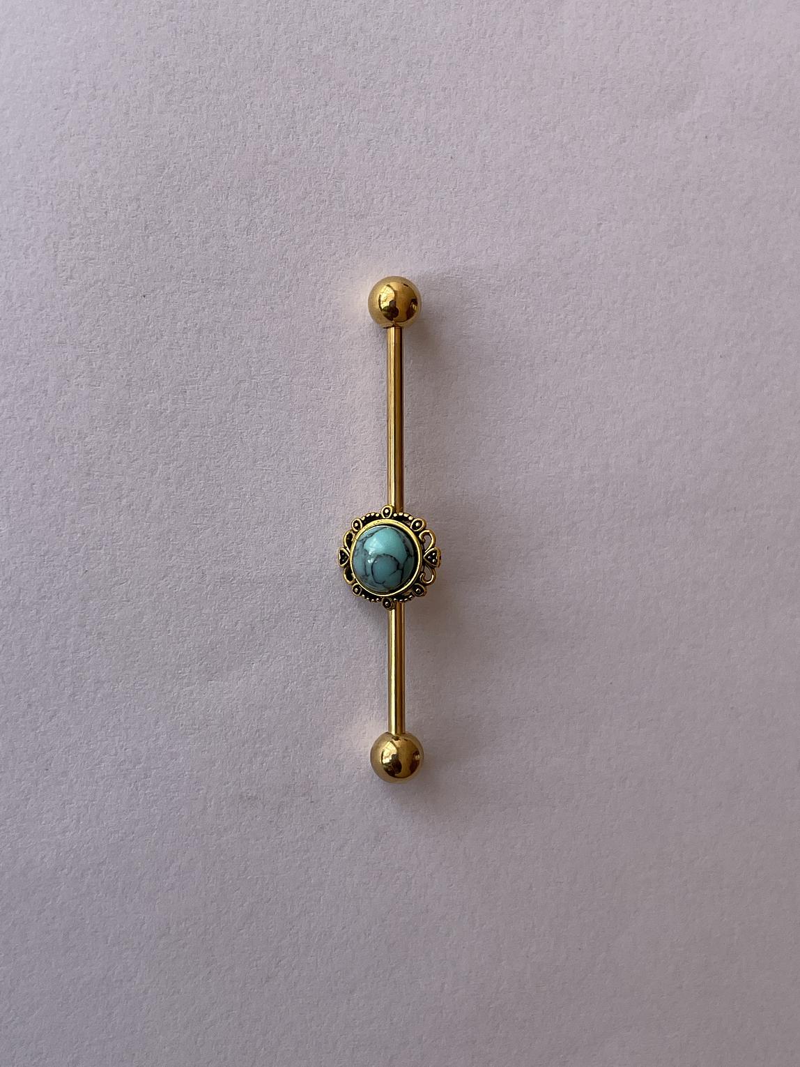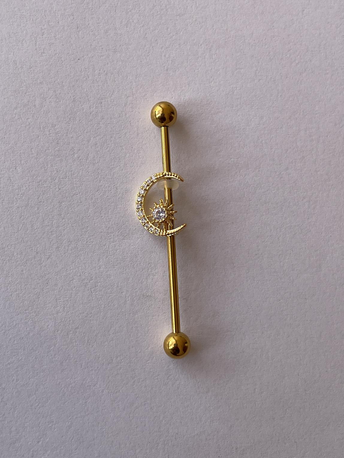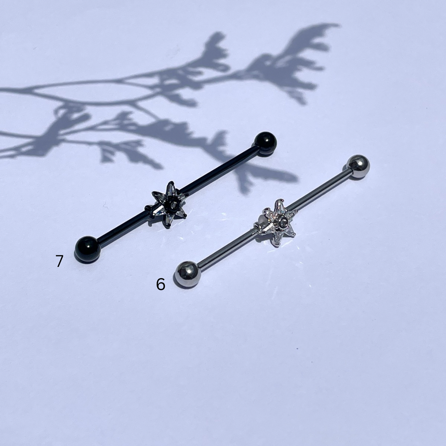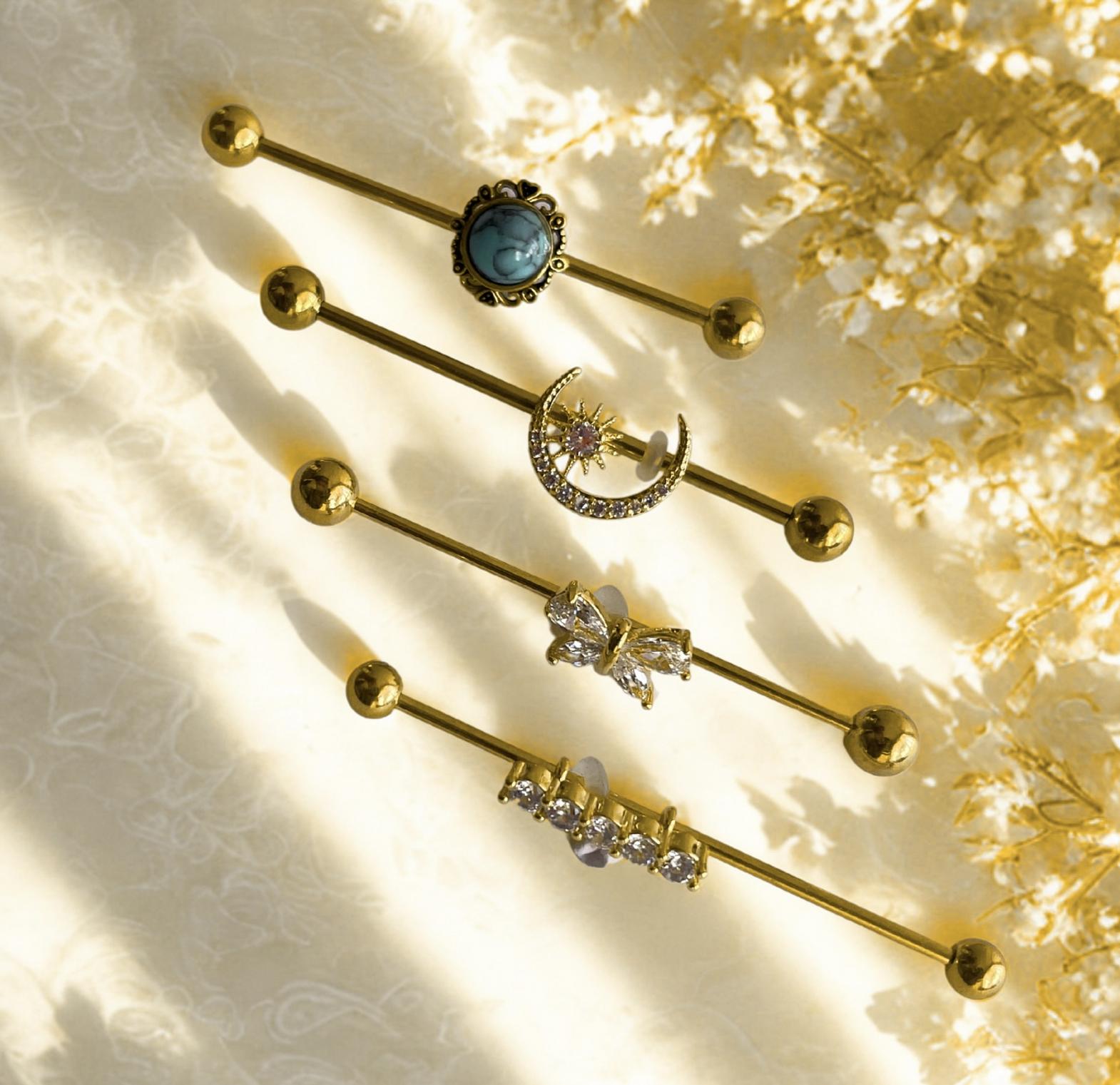 A striking floral dazzling industrial bar that combines edgy body jewelry design with delicate, sparkling detail.