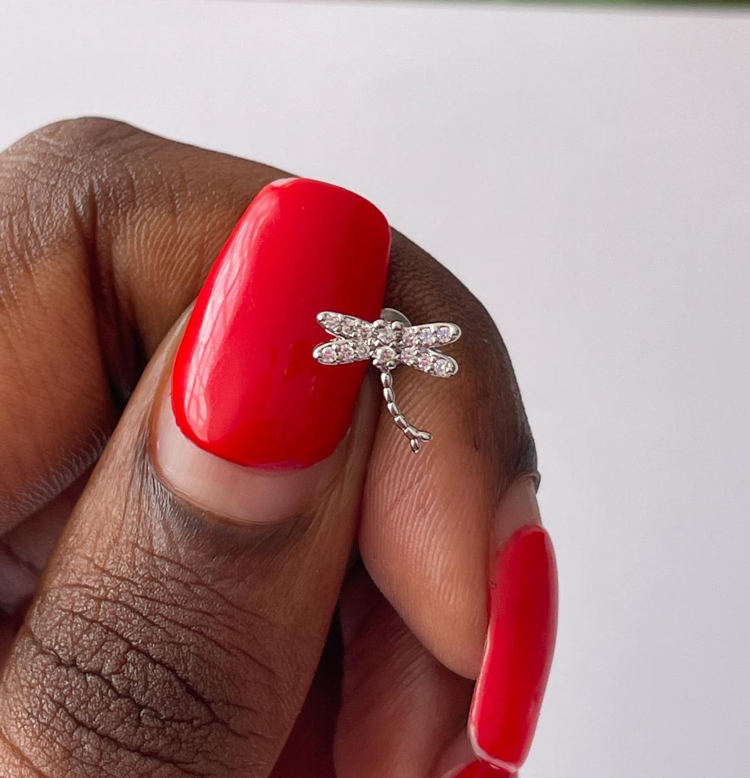 Capture the beauty of nature with this intricate dragonfly stud, adorned with sparkling cubic zirconia. Crafted from durable stainless steel, it adds an elegant and whimsical touch to your look.