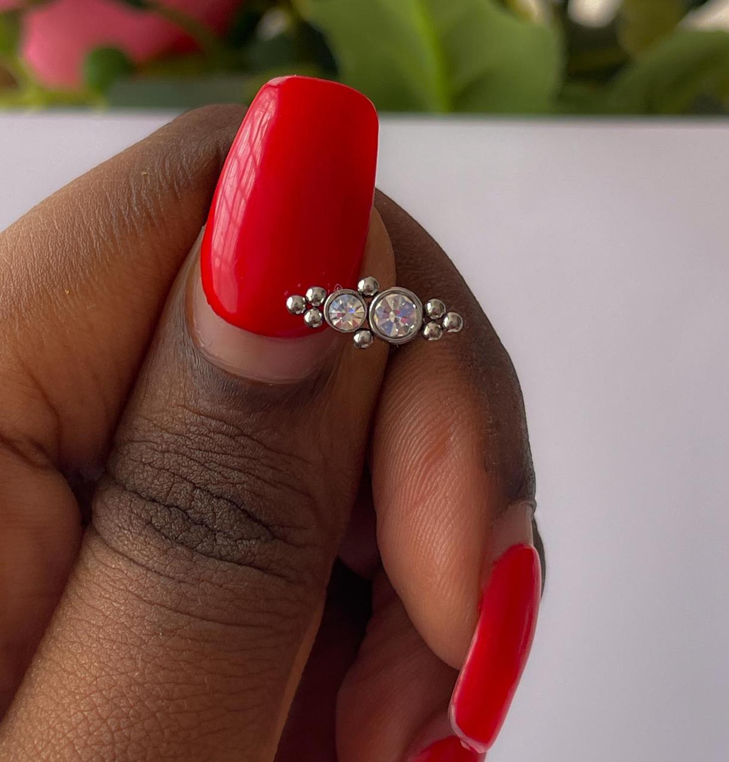 Elevate your style with this elegant flat back stud featuring two brilliant gems. Perfect for a touch of subtle sparkle, it's designed for comfortable and secure wear.