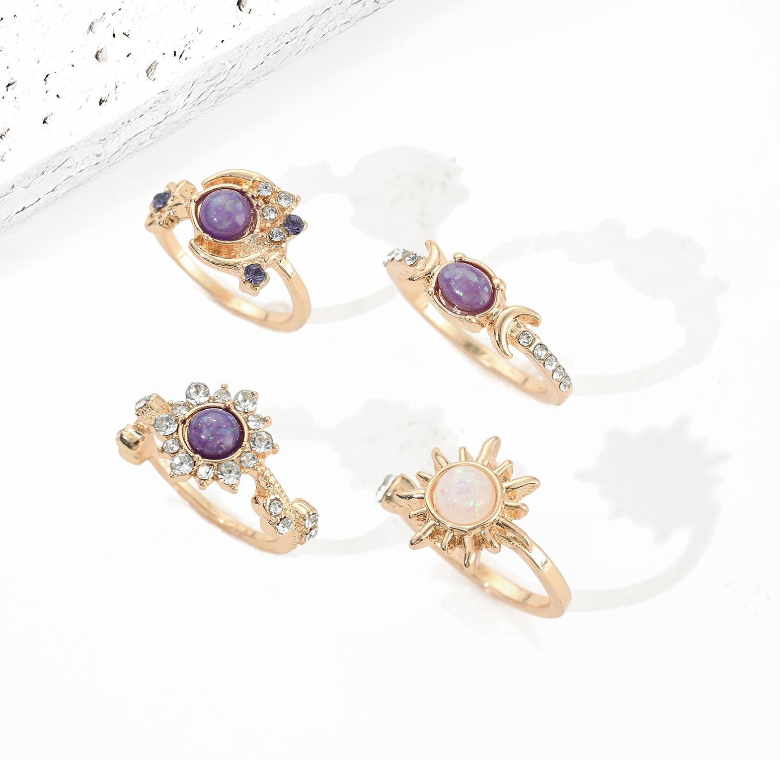 Add a bold yet refined touch to your look with this Elegant Geometric Sun Moon Gemstone Ring Set, designed for modern fashion with a light luxury feel.