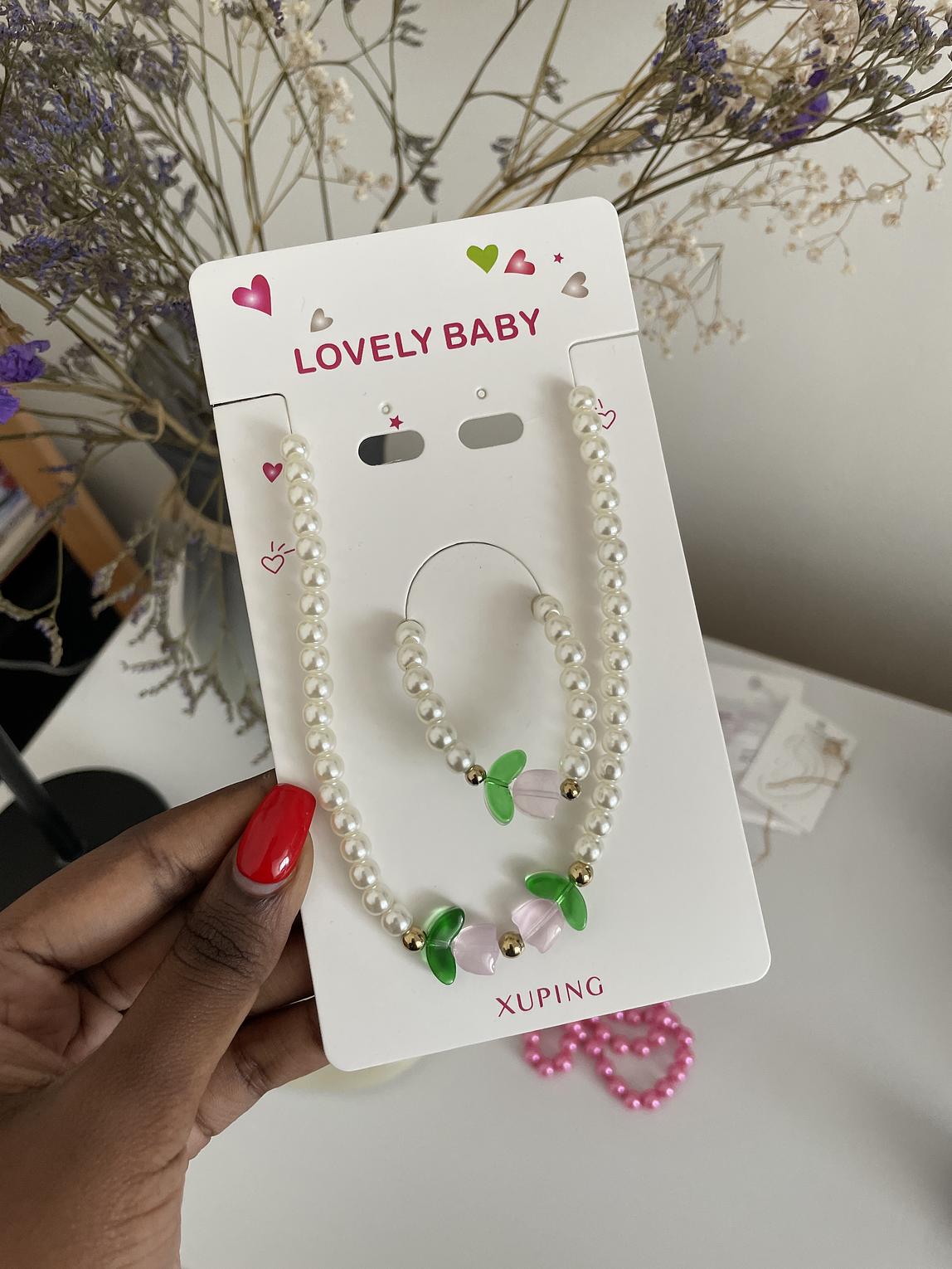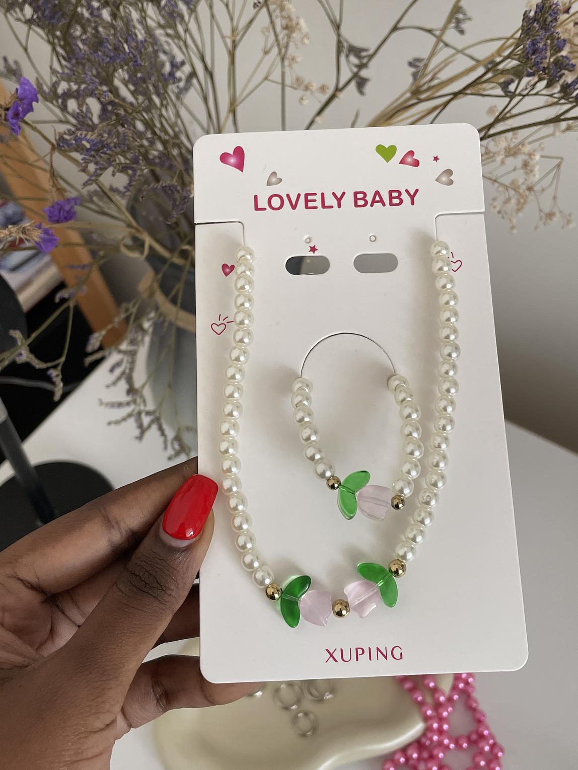 2 pcs tulip flower pendant chain. Comes as a matching set of bracelet and a necklace.