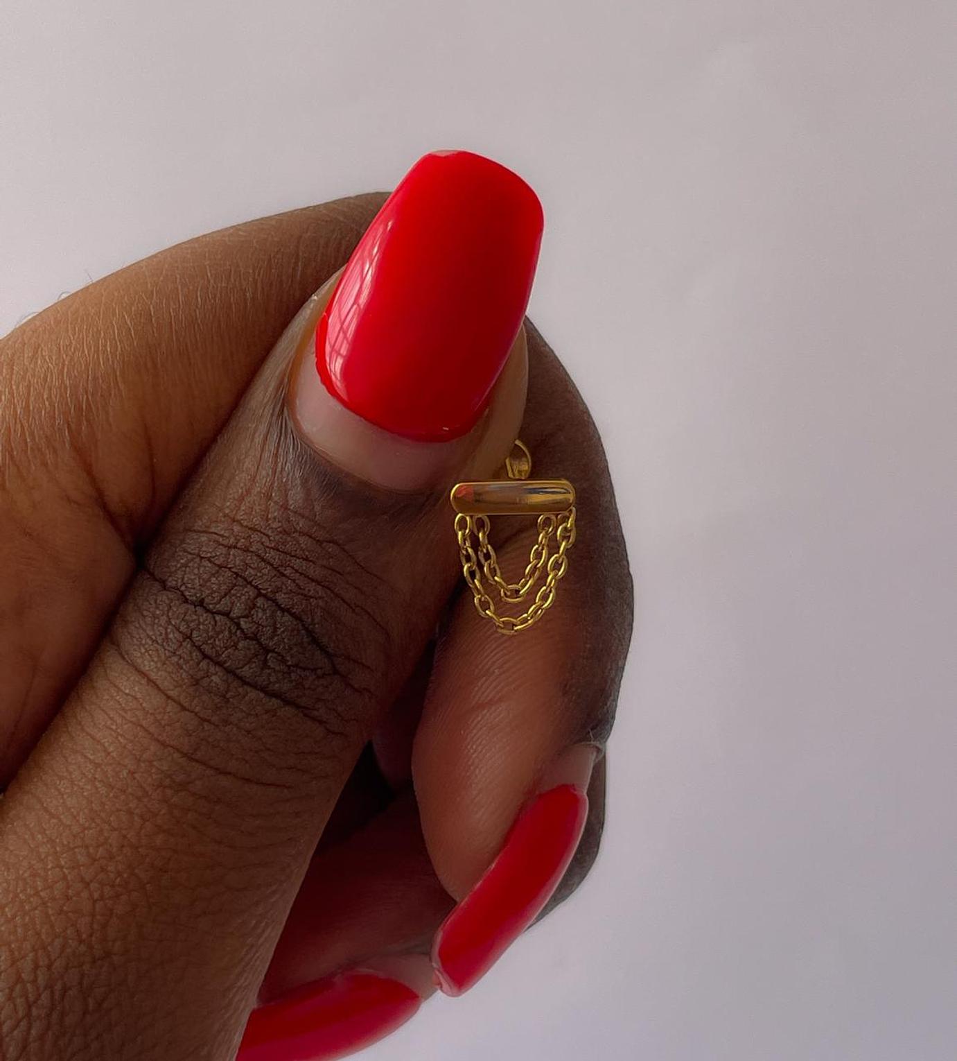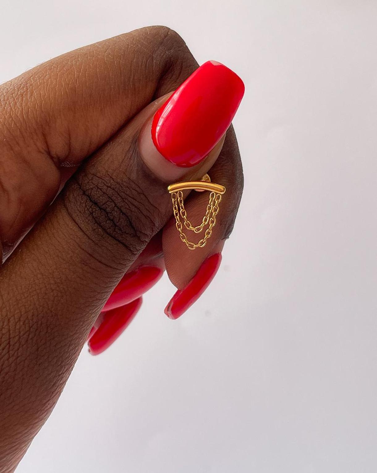Elevate your piercing style with this exquisite golden draped chain labret. Crafted from high-quality titanium, it offers both elegance and comfort for everyday wear.