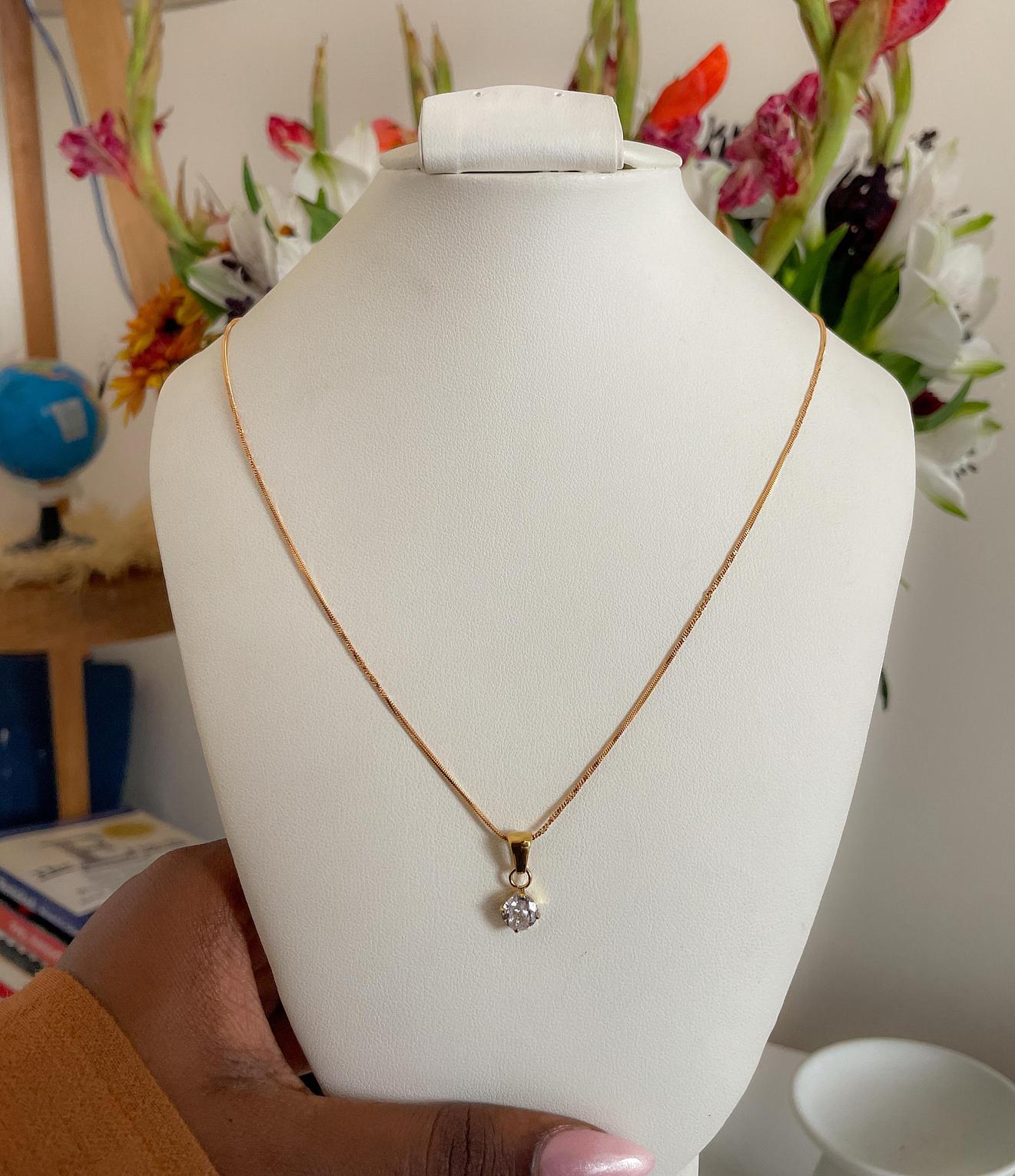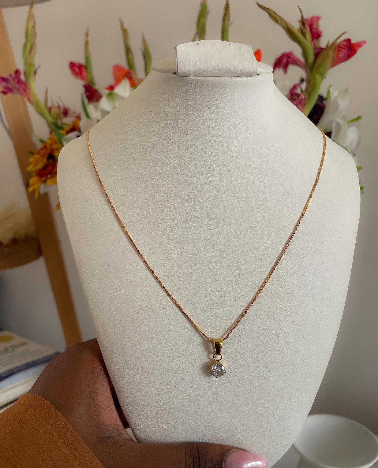 Embrace minimalist elegance with the Golden Solitaire Gleam Necklace, featuring a single, captivating cubic zirconia. This refined piece offers understated brilliance for every occasion.