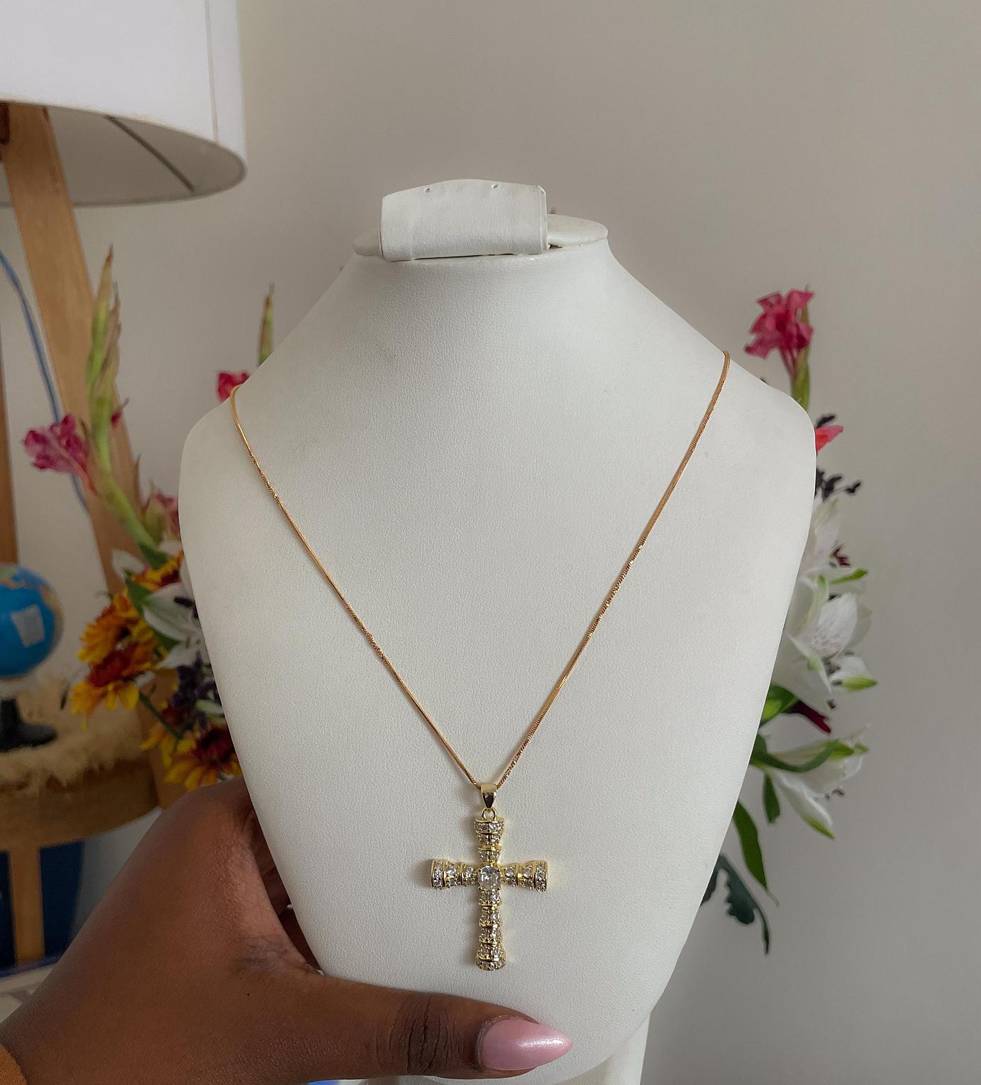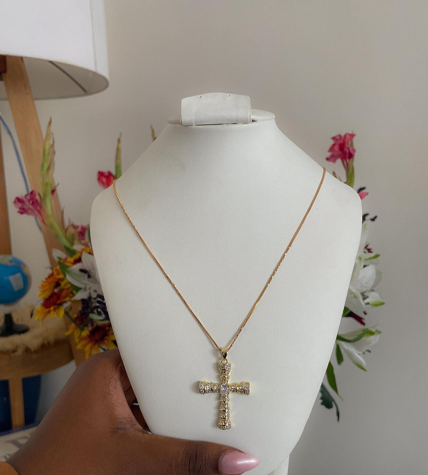 Embrace profound elegance with the Golden Tiered Cross Necklace, a majestic symbol of faith and enduring brilliance. Its multi-dimensional design offers a rich and captivating presence.