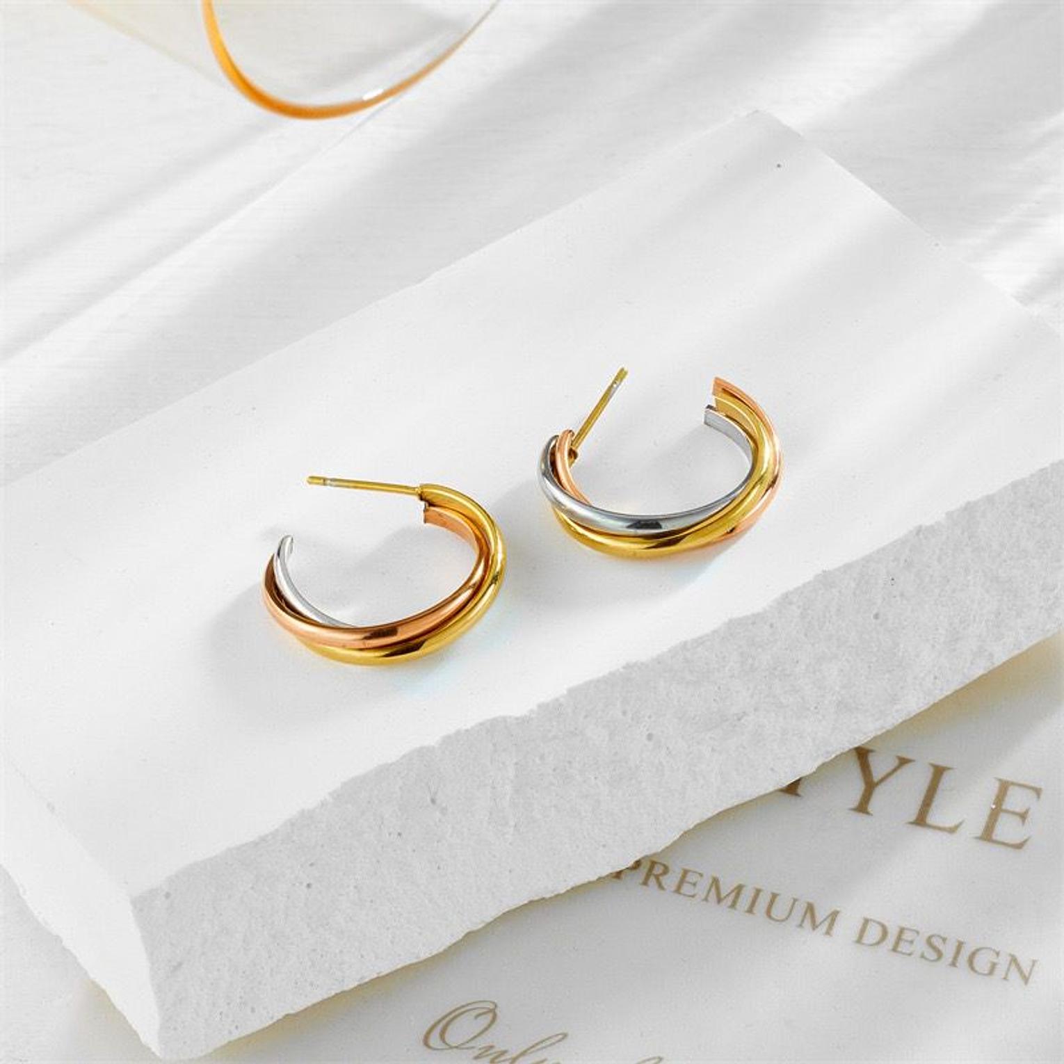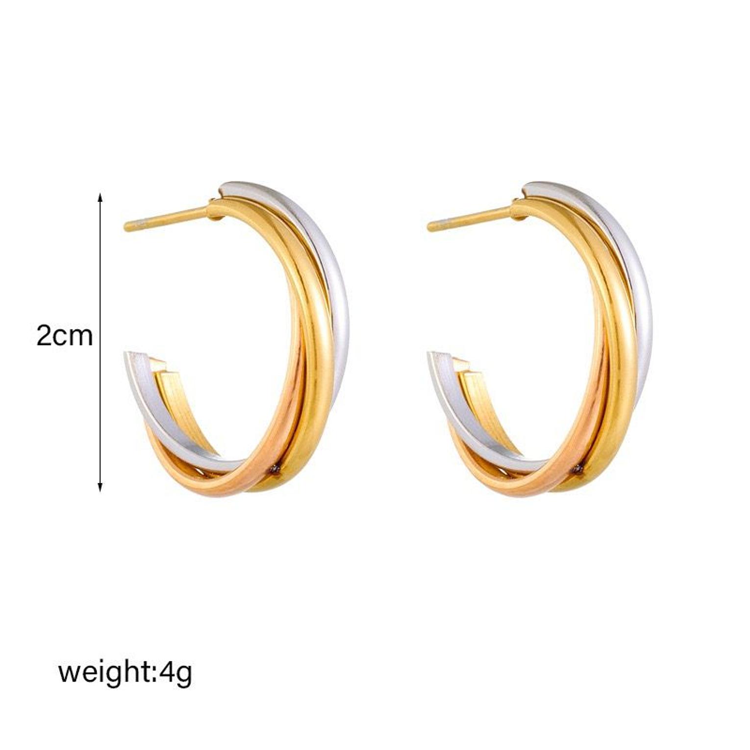 These elegant hoops create a captivating dual-tone effect by gracefully intertwining gold and silver bands. A perfect accessory for those who love to mix metals with sophisticated flair.