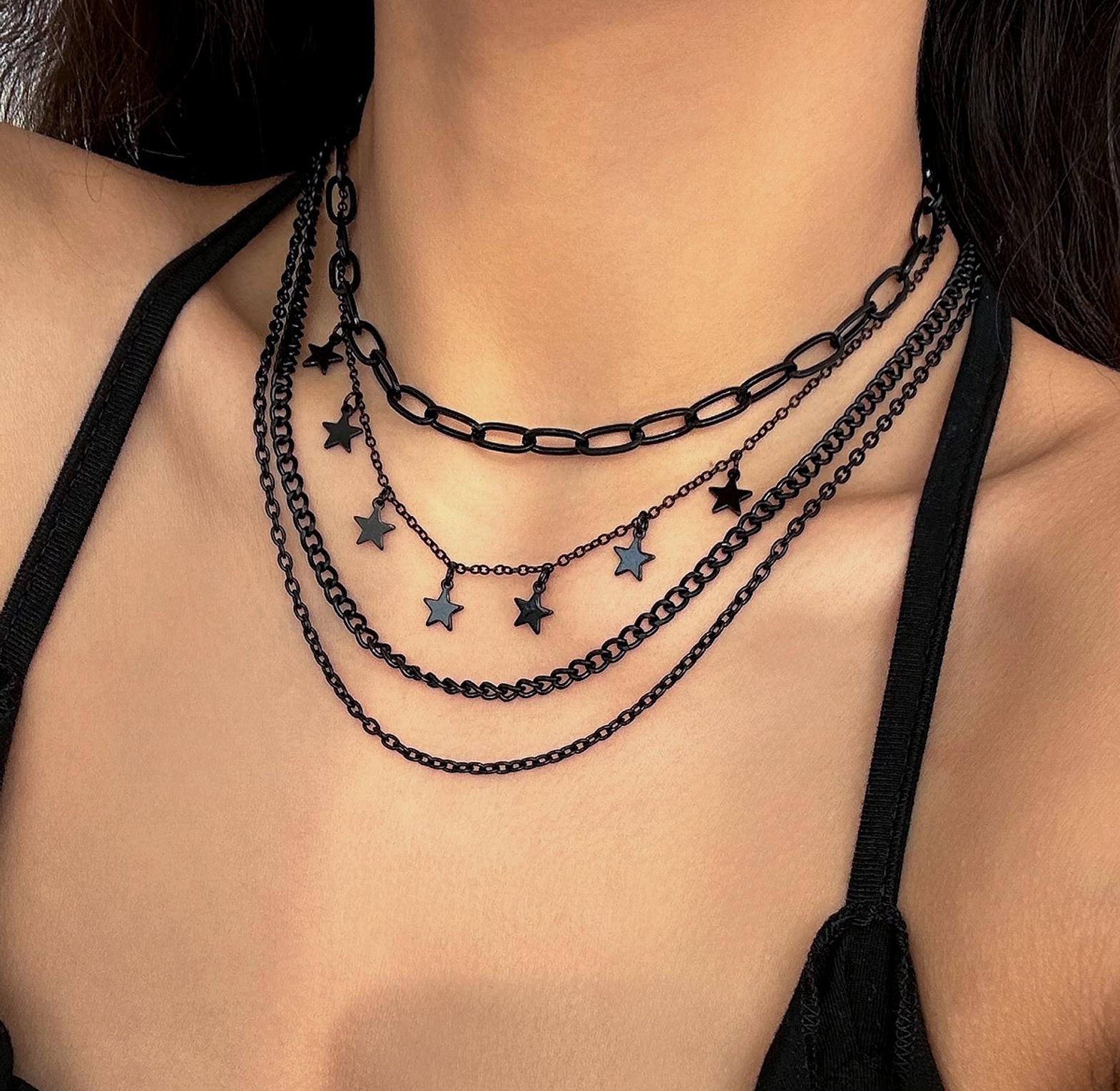 Jewelry Simple Open Heart Chain Jewelry Sweet Cool Dark Micro-inlaid Meniscus Tassel Necklace for Women