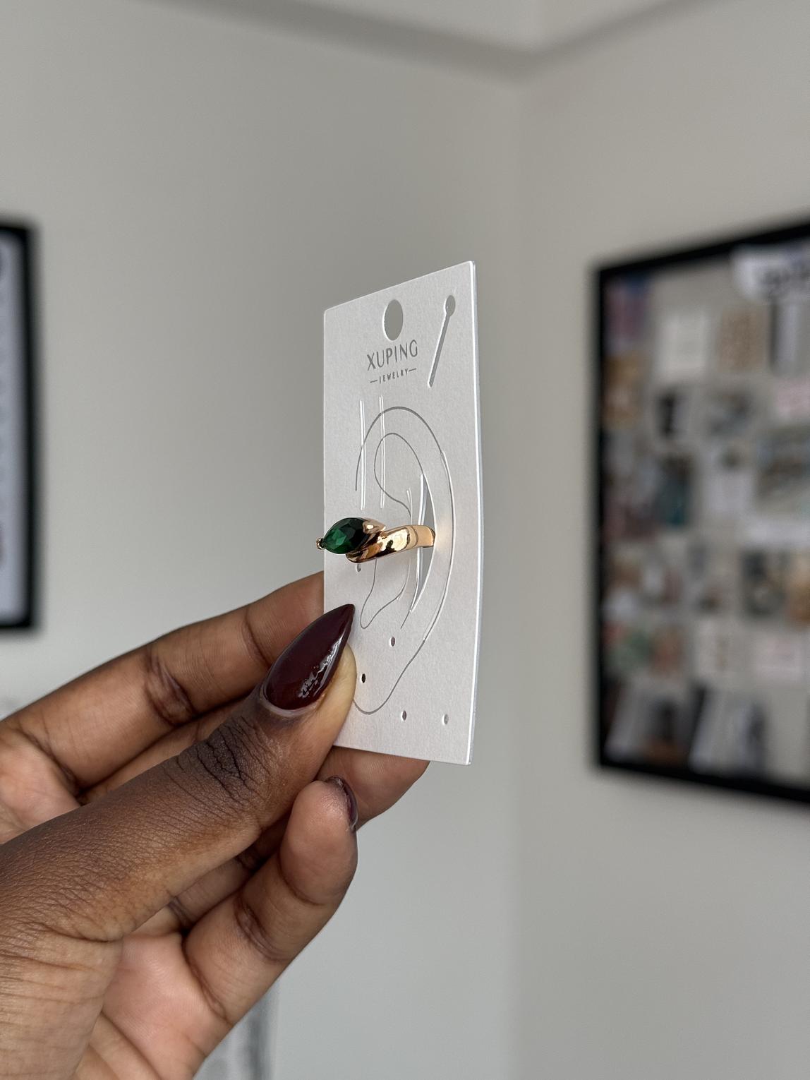 Sleek and eye-catching, this marquise-cut ear cuff adds instant sparkle without the need for a piercing. Designed to hug the ear comfortably, it’s the perfect statement for modern, effortless style.