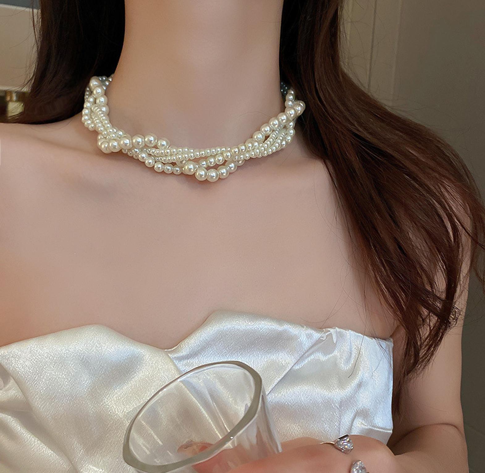 Elevate your elegance with this stunning multi-layer pearl necklace, designed in a refined retro court style that exudes timeless sophistication. Featuring delicately layered chains adorned with lustrous pearls, this piece sits beautifully along the clavicle, creating a graceful and luxurious silhouette.