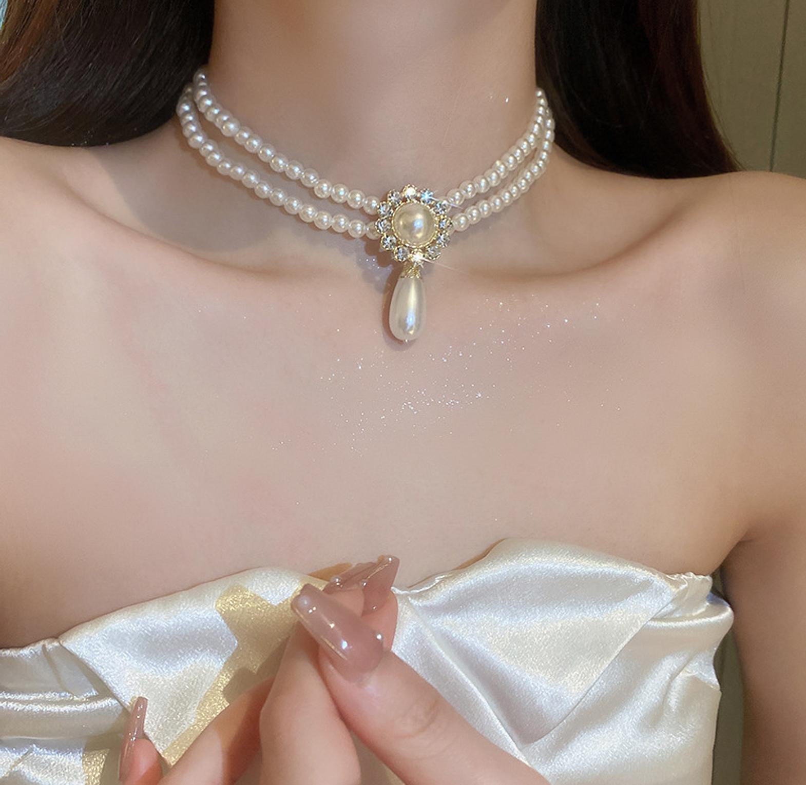 Featuring delicately arranged layered chains adorned with lustrous pearl accents, this necklace creates a graceful cascading effect that enhances the neckline beautifully. Each pearl is carefully selected to reflect a gentle, natural sheen, giving the piece a high-grade light luxury finish without appearing overly bold.