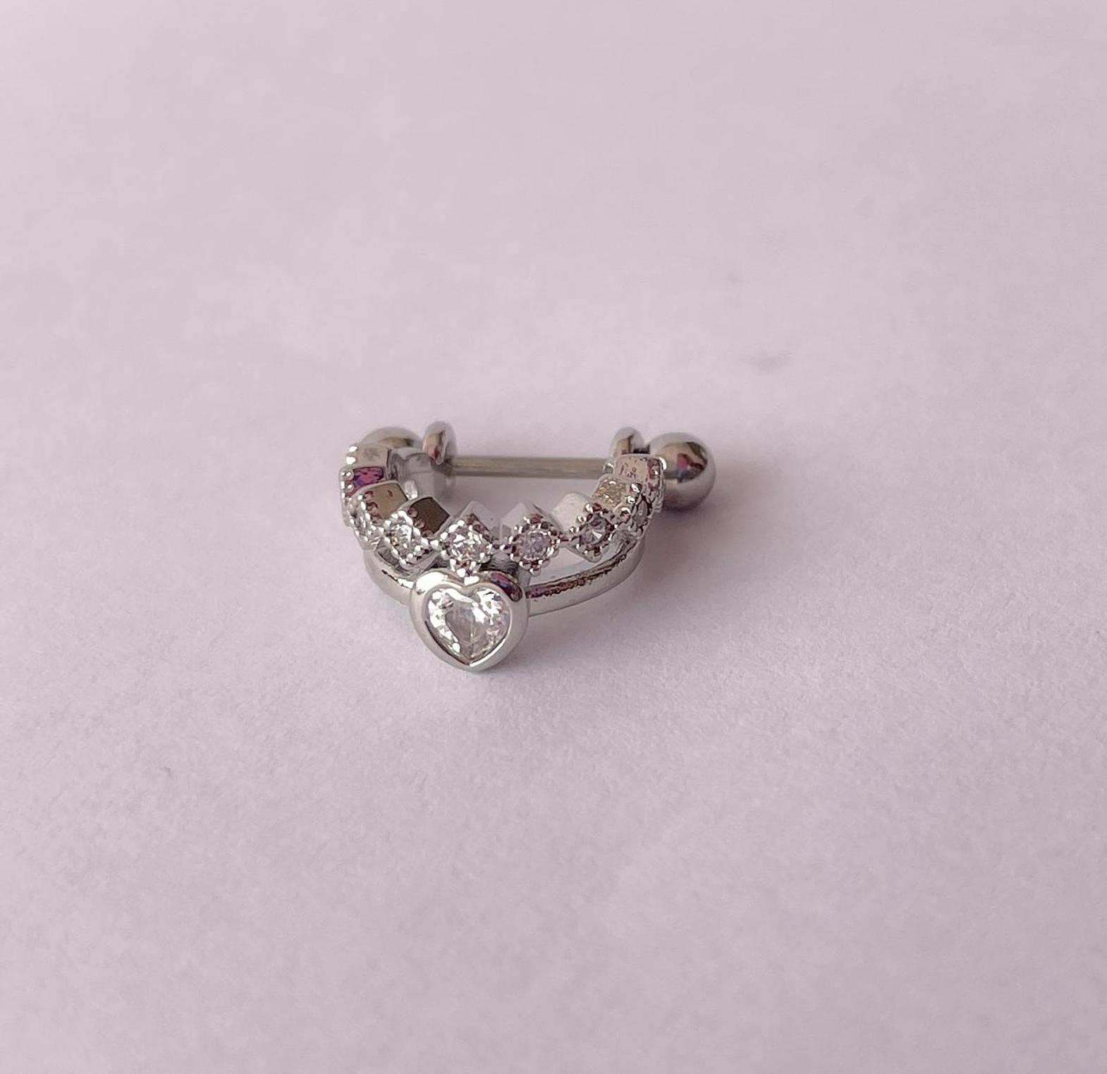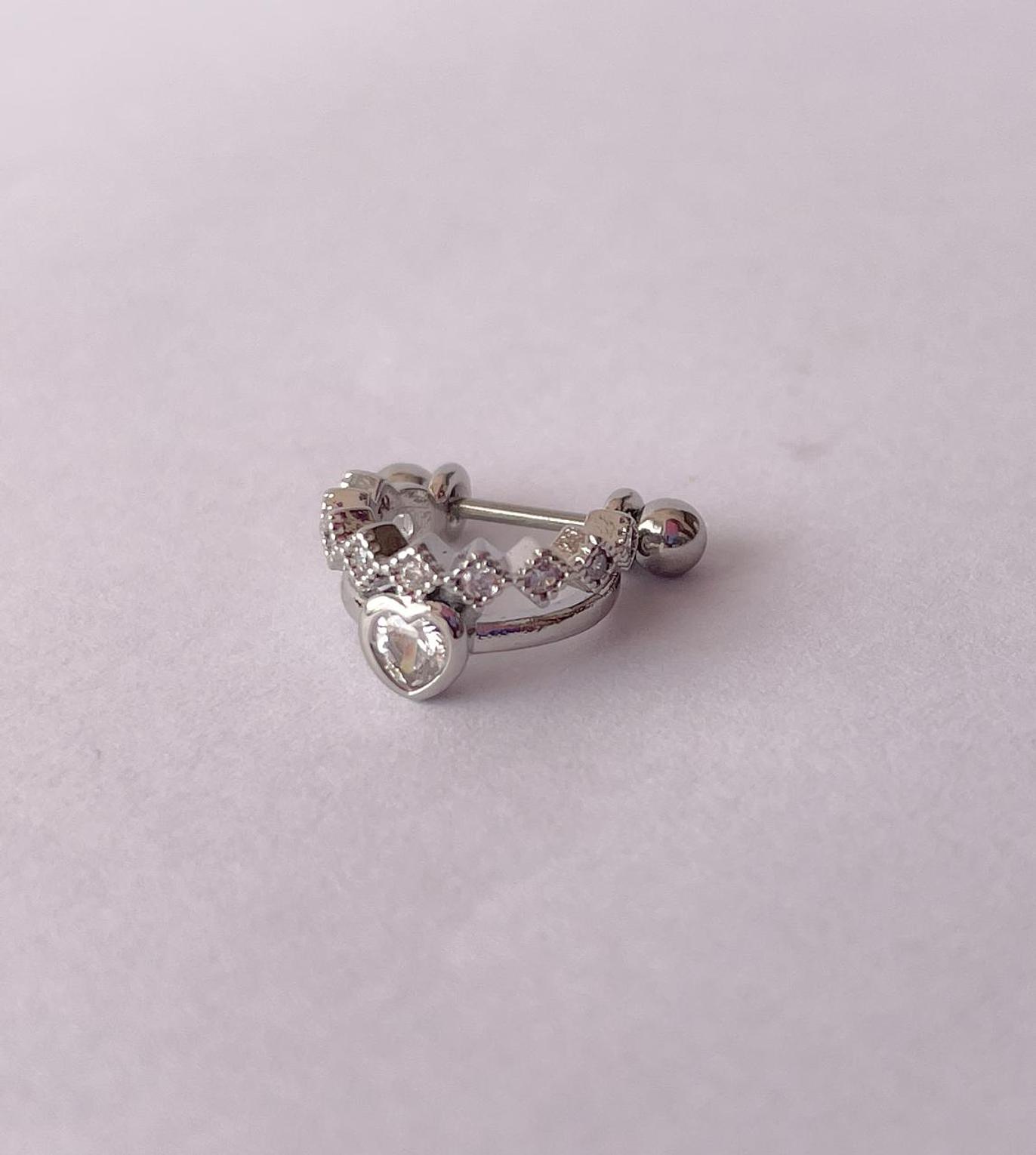 Express your style with the elegant Regal Heart Charm Helix, featuring a dazzling heart-shaped cubic zirconia and a shimmering pavé-set band. Crafted from hypoallergenic and non-tarnish stainless steel, this piece offers lasting beauty and comfort.