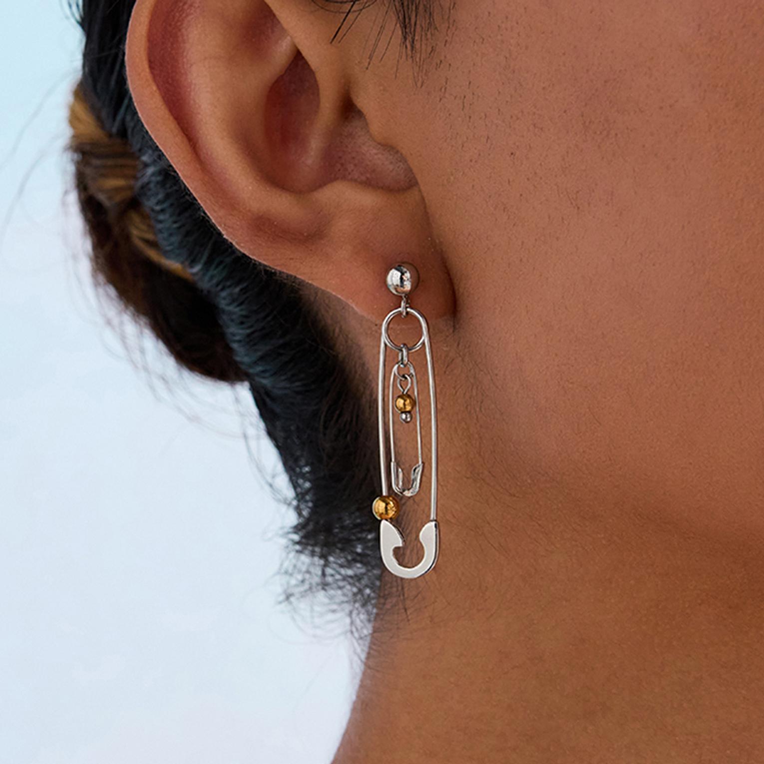 Edgy drop earrings designed like iconic safety pins, perfect for bold, modern style.