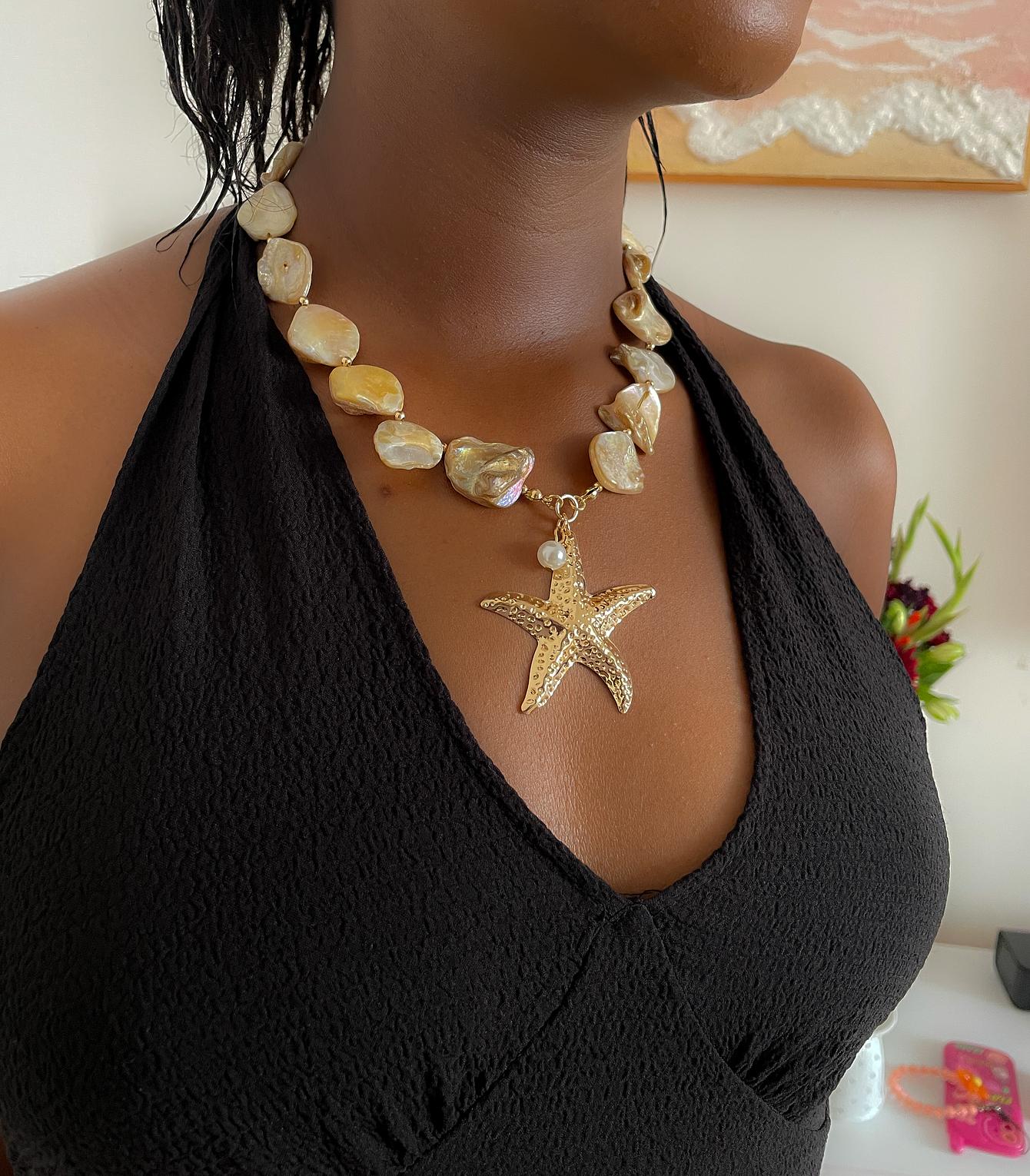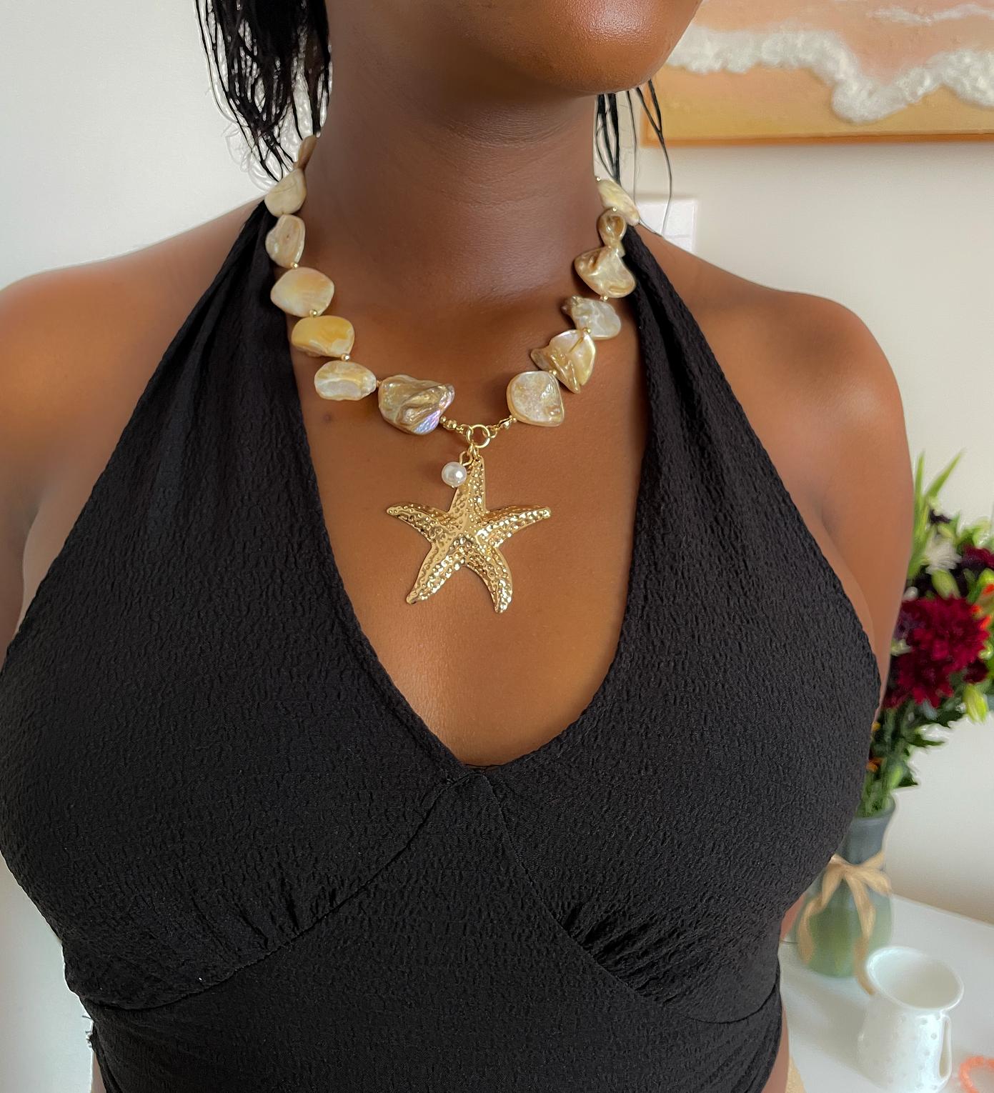 Sea shell necklace, starfish pendant necklace, summer necklace, boho bridal jewelry, shells necklace, holidays jewelry, necklace woman