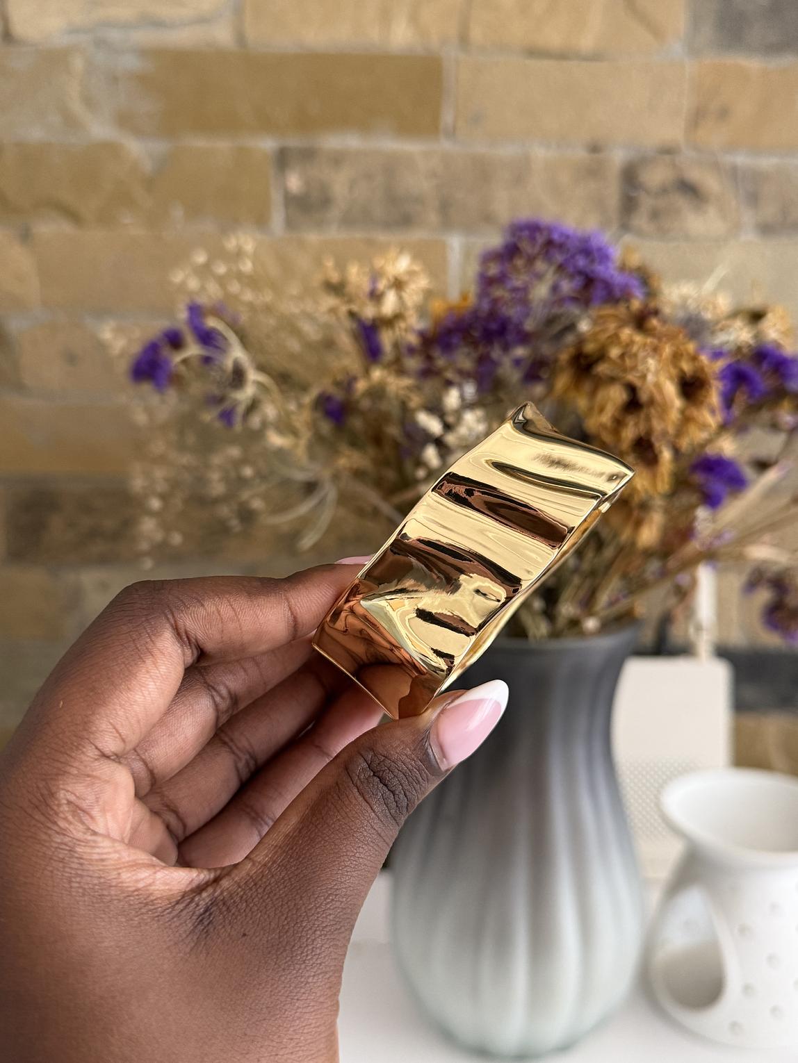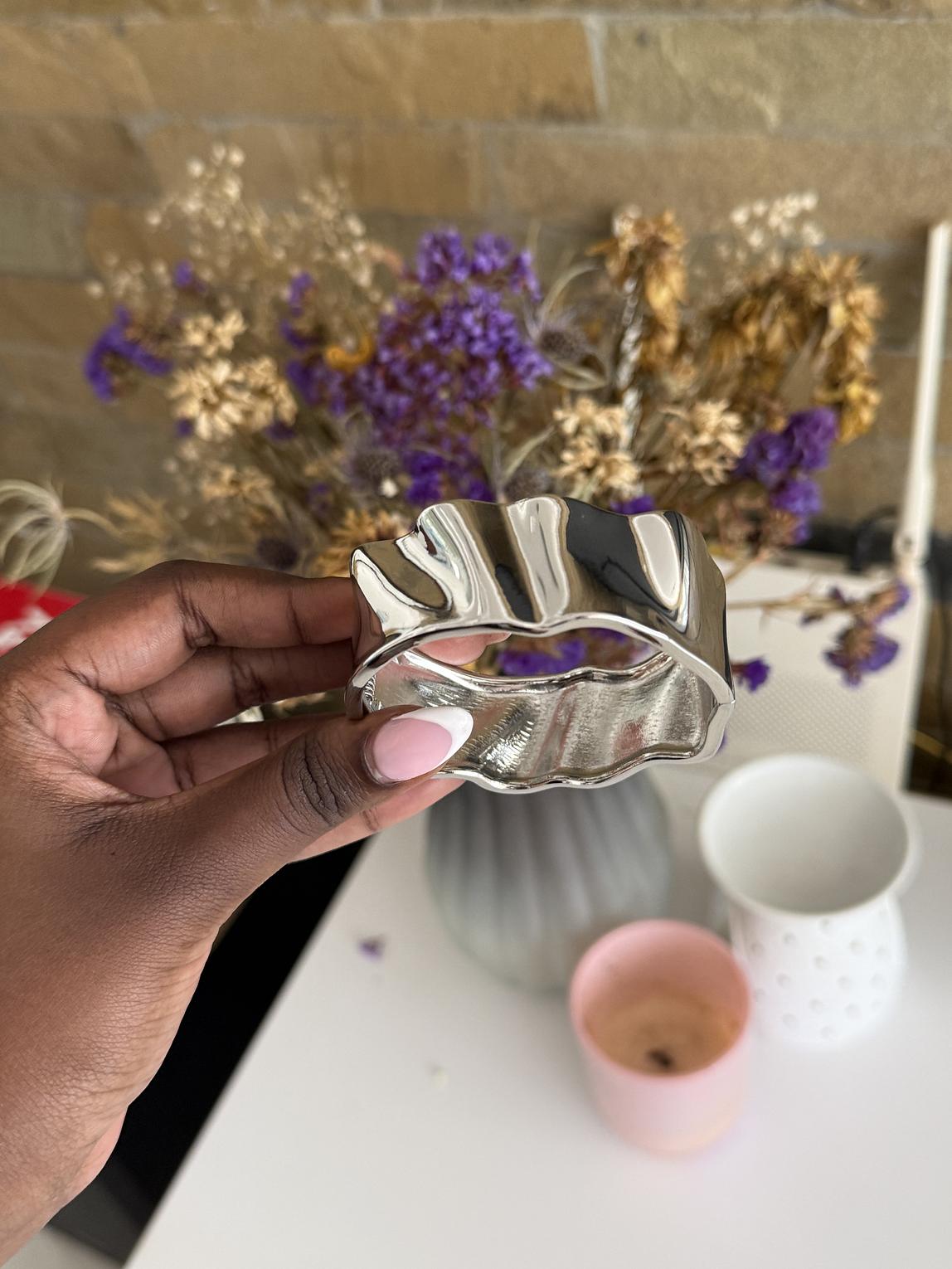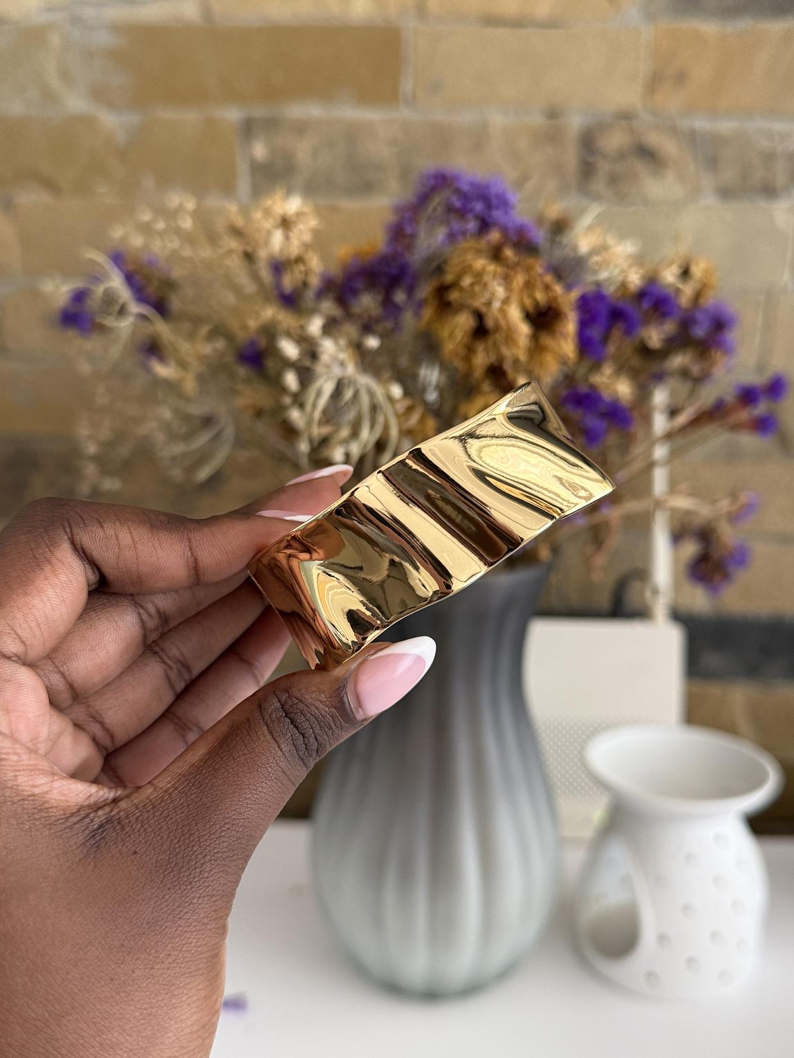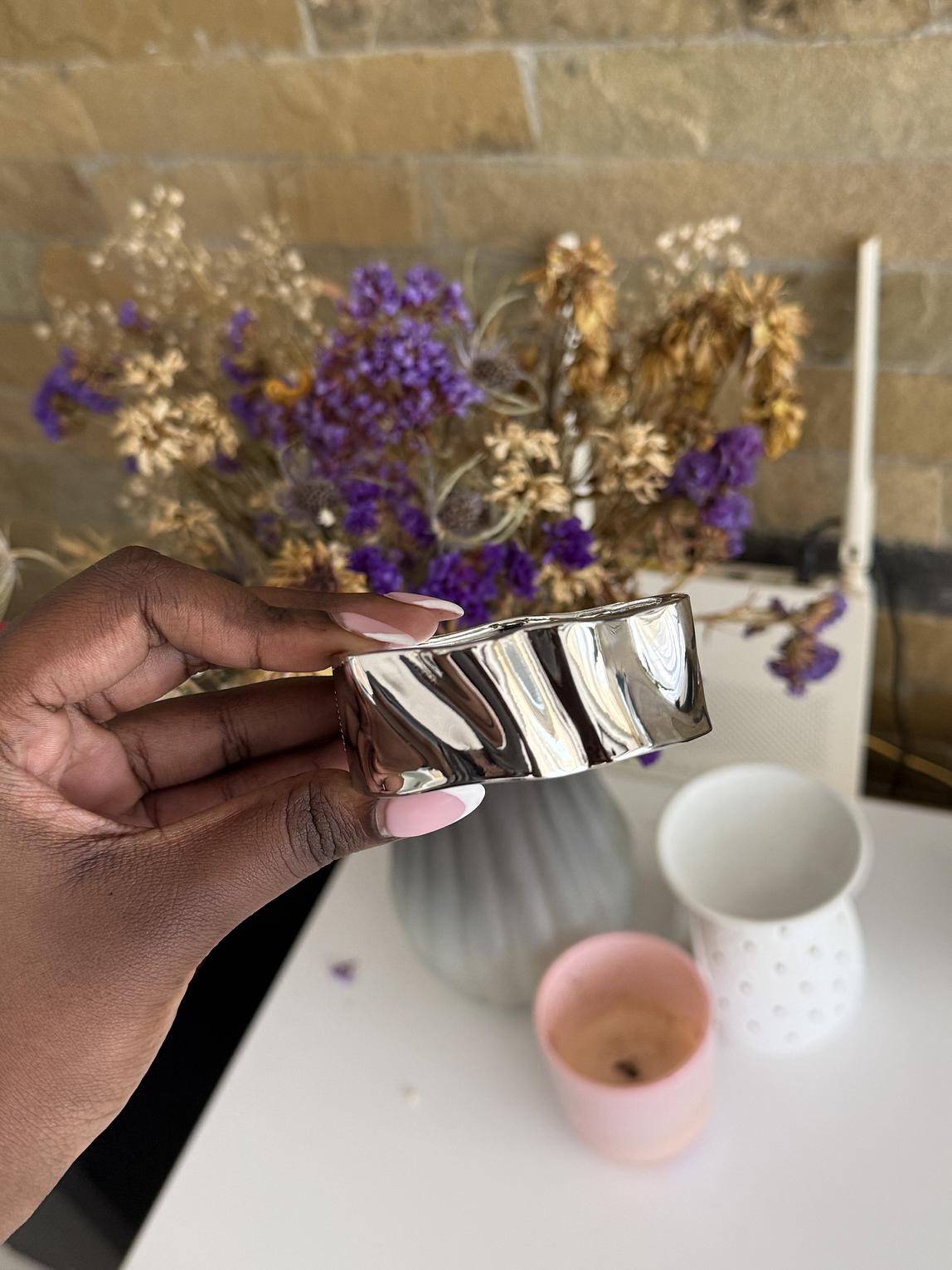 Minimalist bangle with soft light texture.